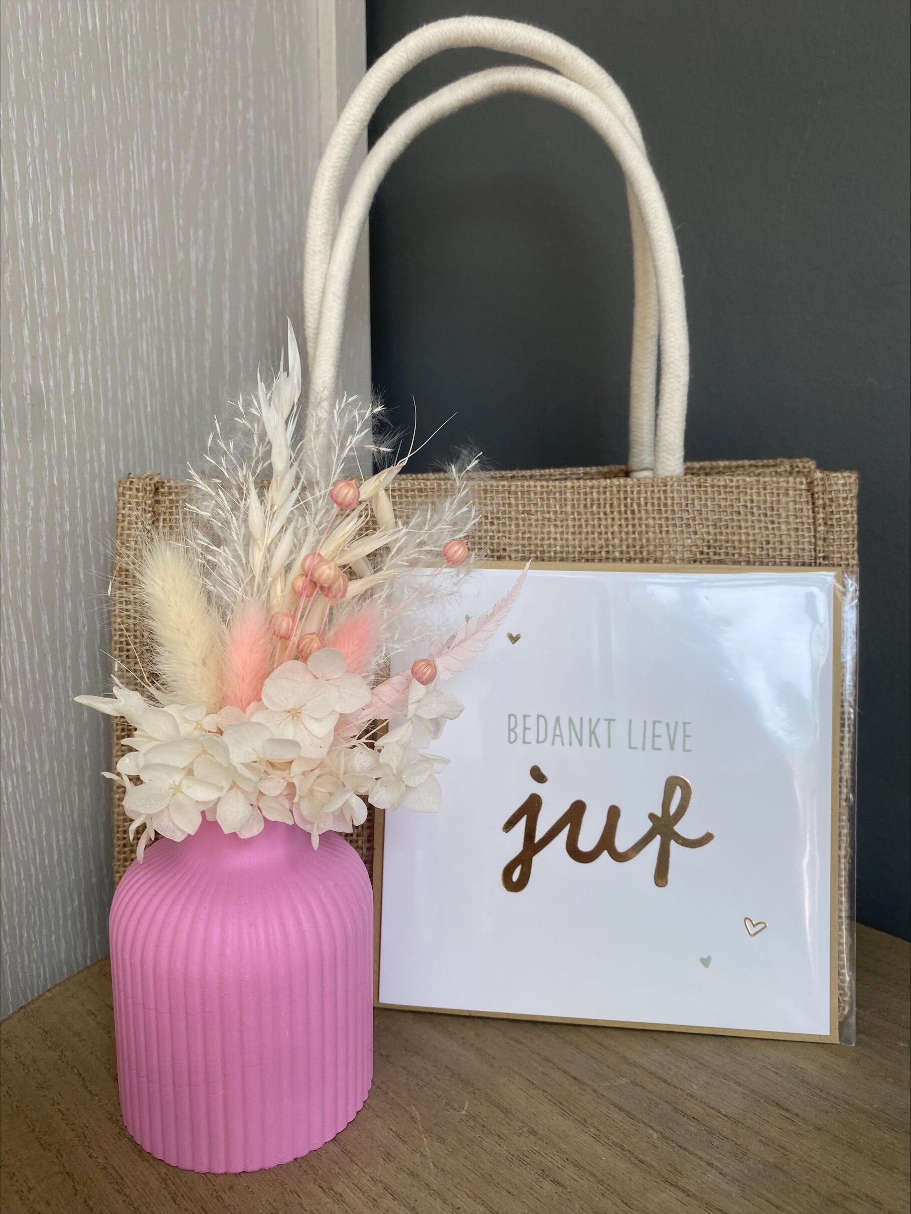 Bedank de juf met een leuk vaasje met droogbloemen!